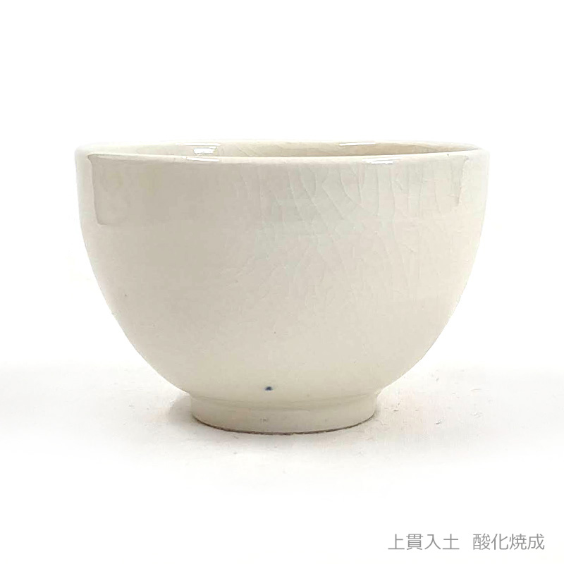 酸化焼成で呈色が白く、細かい貫入が入りやすい。小物向き。