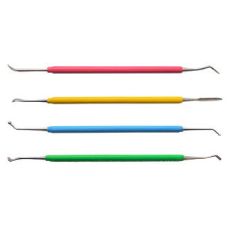 成形時に先端や首の部分を使い、粘土の盛り付け、かき取り、模様付けなどに使用します。