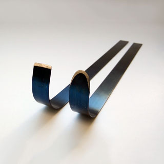 持ち手から刃先まで1本の帯状ですので、しなりやすく、土の上を跳ねやすい飛びカンナです。