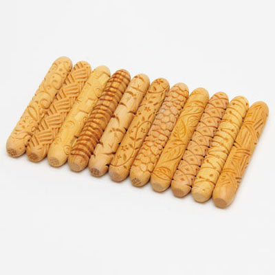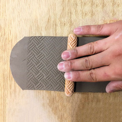 ローラーを粘土に転がして模様を浮き出します。
