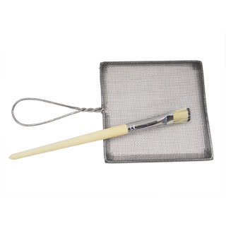 顔料や釉薬を含ませた『ぼかしブラシ』で『ぼかし網』を擦ることで絵具を飛散させてぼかしを表現します。