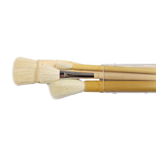 広い範囲を均一にカバーできる平刷毛・平筆と、部分的な筆塗りに便利なダミ筆の大小人気サイズが揃っています。