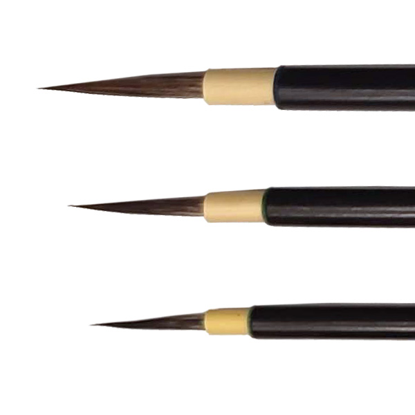 イタチ毛・・・・しなやかな弾力があり、水含み、毛のまとまりも非常に良い。更に、毛先消耗度が極めて低く、面相の材質としては最高級の面相に使用される。
