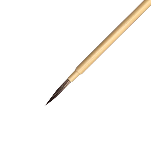 イタチ毛・・・・しなやかな弾力があり、水含み、毛のまとまりも非常に良い。更に、毛先消耗度が極めて低く、面相の材質としては最高級の面相に使用される。
