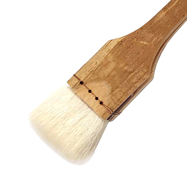 山羊毛・・・・・水含み、毛のまとまりが良く、毛の消耗度が低い。復元性に特徴があり、腰の強いものと軟らかいものがある。 ダミ筆や刷毛の材料として使われることが多い。