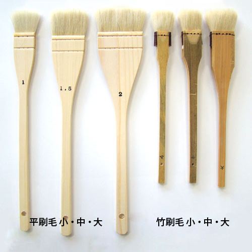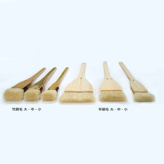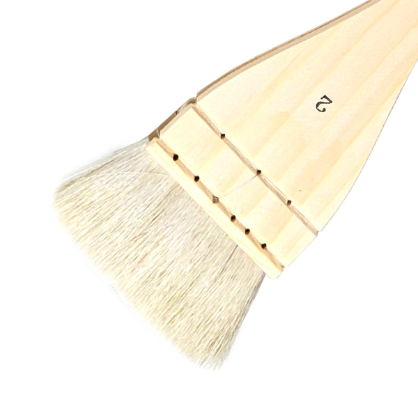 山羊毛を使った、普及品の平刷毛筆です。幅広で、広い範囲を均一に塗ることができます。