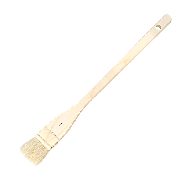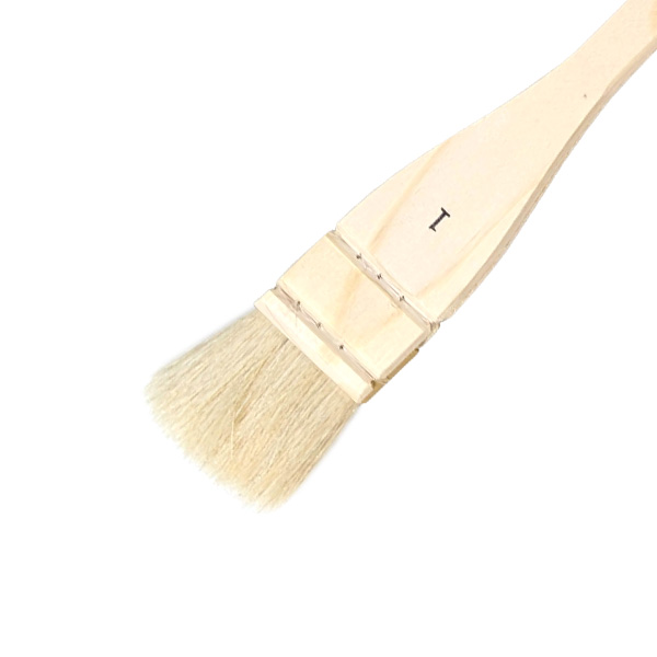 山羊毛を使った、普及品の平刷毛筆です。幅広で、広い範囲を均一に塗ることができます。