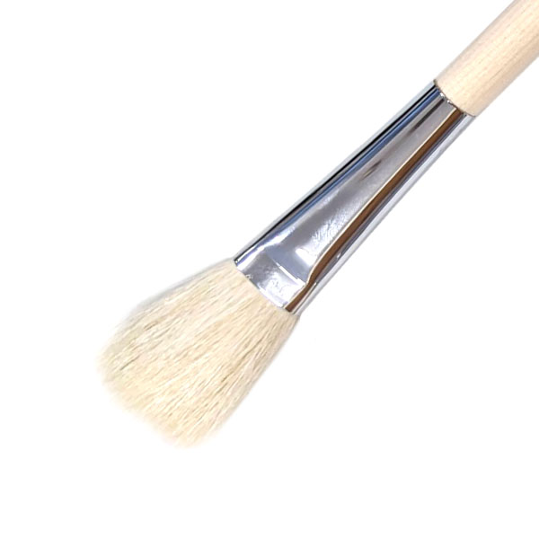 山羊毛・・・・・水含み、毛のまとまりが良く、毛の消耗度が低い。復元性に特徴があり、腰の強いものと軟らかいものがある。ダミ筆や刷毛の材料として使われることが多い。