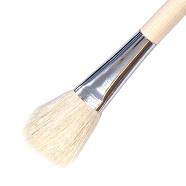 山羊毛・・・・・水含み、毛のまとまりが良く、毛の消耗度が低い。復元性に特徴があり、腰の強いものと軟らかいものがある。ダミ筆や刷毛の材料として使われることが多い。