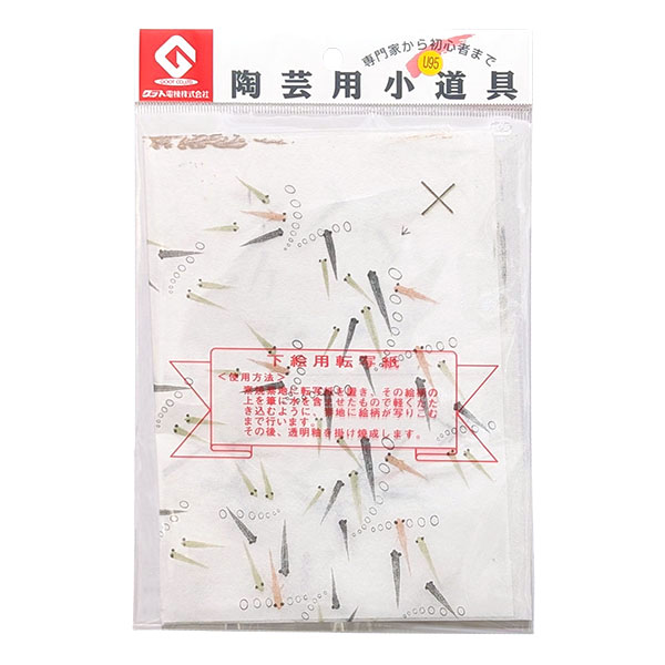 絵柄・デザインは版権等の諸事情により、変更またはご要望にお答えできない場合があります。大きさ・絵柄・ピース数には多少の変動がありますので、ご了承ください。素焼き素地に転写紙を置き、その絵柄の上をダミ筆に水を含ませたもので軽く叩き込みように素地に絵柄が刷り込むまで行います。その後、透明釉を掛け焼成します。