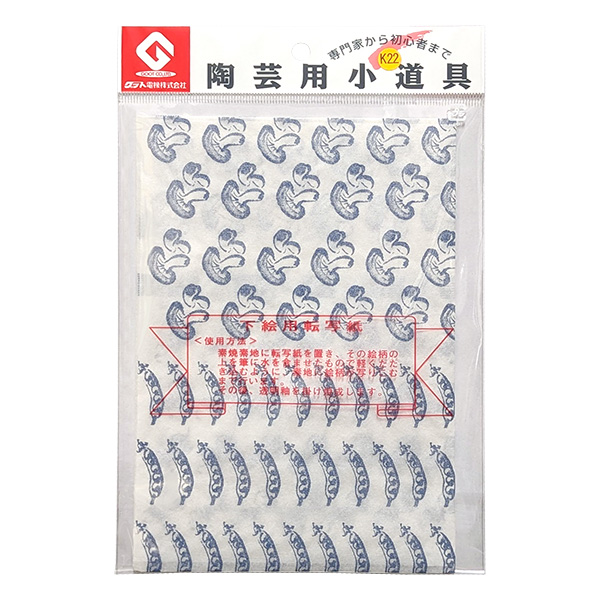絵柄・デザインは版権等の諸事情により、変更またはご要望にお答えできない場合があります。大きさ・絵柄・ピース数には多少の変動がありますので、ご了承ください。素焼き素地に転写紙を置き、その絵柄の上をダミ筆に水を含ませたもので軽く叩き込みように素地に絵柄が刷り込むまで行います。その後、透明釉を掛け焼成します。