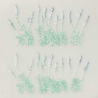 花の絵柄の輪郭部分を盛り上げ厚みのある線と、中側には色々の絵具を配色した転写紙です。