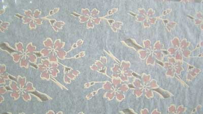 花の絵柄の輪郭部分を盛り上げ厚みのある線と、中側には色々の絵具を配色した転写紙です。