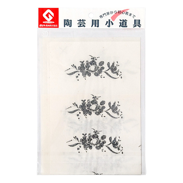 絵柄・デザインは版権等の諸事情により、変更またはご要望にお答えできない場合があります。大きさ・絵柄・ピース数には多少の変動がありますので、ご了承ください。素焼き素地に転写紙を置き、その絵柄の上をダミ筆に水を含ませたもので軽く叩き込みように素地に絵柄が刷り込むまで行います。その後、透明釉を掛け焼成します。