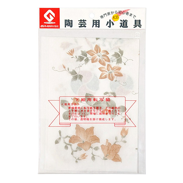 絵柄・デザインは版権等の諸事情により、変更またはご要望にお答えできない場合があります。大きさ・絵柄・ピース数には多少の変動がありますので、ご了承ください。素焼き素地に転写紙を置き、その絵柄の上をダミ筆に水を含ませたもので軽く叩き込みように素地に絵柄が刷り込むまで行います。その後、透明釉を掛け焼成します。