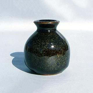 特徴・・・・・・黒あめ地に金斑点が出ます。焼成温度により細かい斑状からあめ色になります。