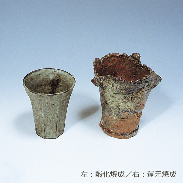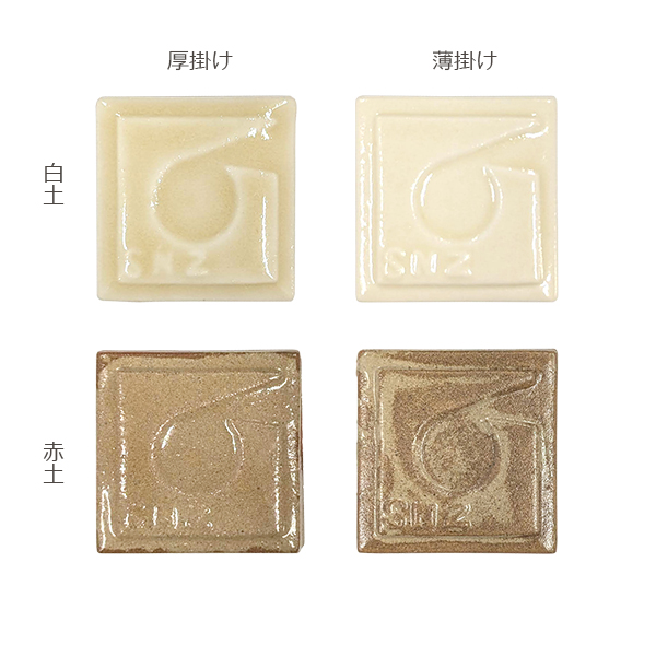 弱土(耐火度が低く荒目の土、焼き締まりにくい)は光沢・強土(耐火度高く細目の土、焼き締まりやすい)はつや消しになります。