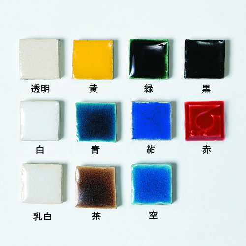七宝絵具のように彩度が高く、透明性で色ガラス状の、発色の美しい色釉薬です。
