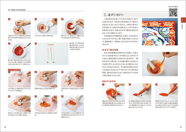 染錦の基礎知識から、使用する道具や材料、下絵付け(染付)、上絵付の流れと実践、注意すべきポイントなどを豊富な写真とともに詳述。また、QRコードで動画連動しているので、わかりやすさもアップ。