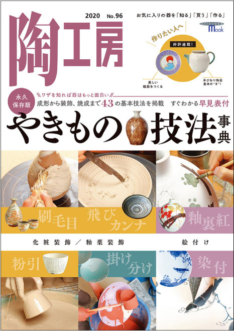 今号の特集は、成形から装飾、焼成まで43の基本技法を掲載した「やきもの技法事典」です。