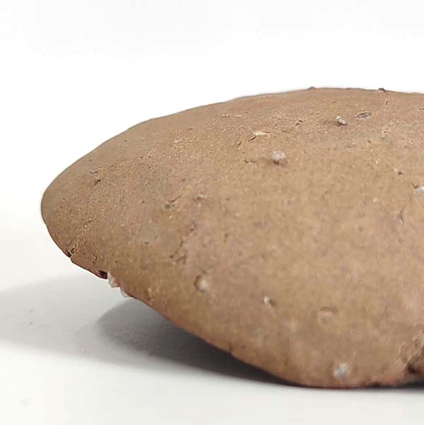 シャモットを混ぜた土の表面には、全体にシャモットの白い粒が見えています。表面に突起は出ていません。
