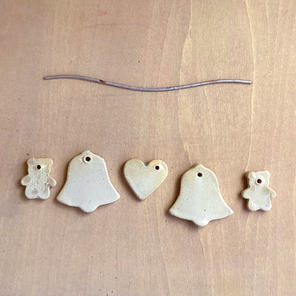 吊るした作品:小×5(約2~3g) 合計約12g※本焼き後のサイズ