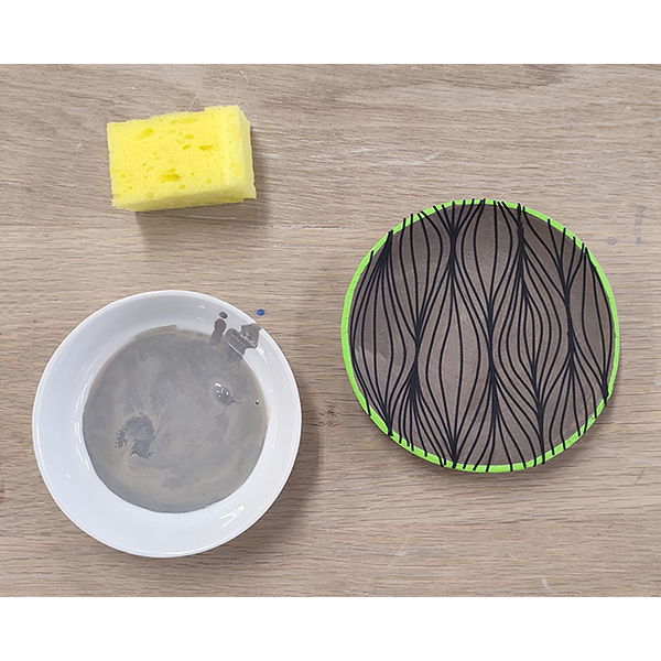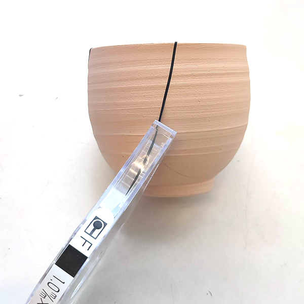 テープが素焼き素地にしっかりと定着しているので、筆で塗ることもできます。