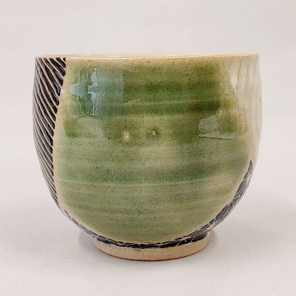 マグネシアマット釉はやわらかい線が出ましたが、織部釉は線がつぶれてしまいました。