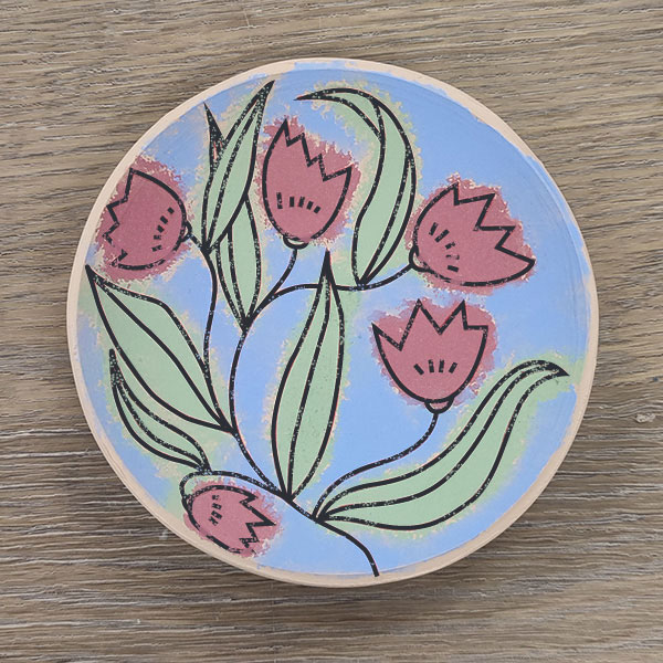 絵具の変色が少ない無亜鉛透明釉を掛けました。
