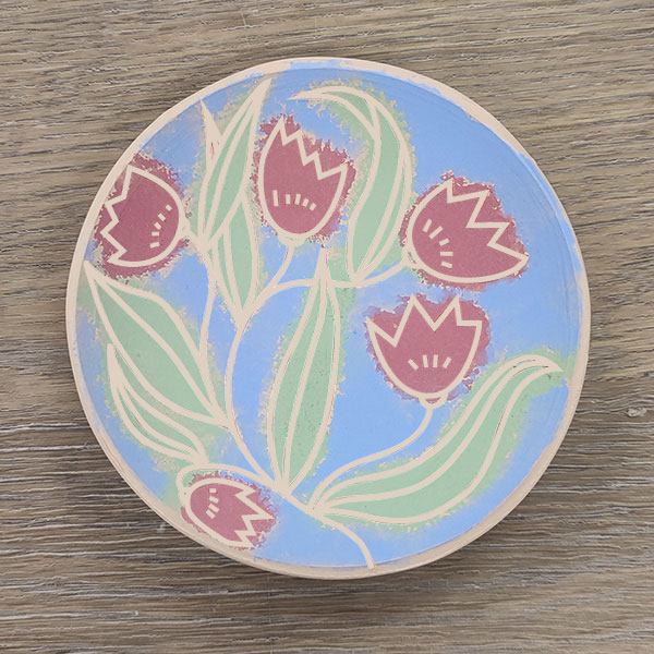 透明釉を薄くかければ化粧泥の凹凸が楽しめる作品になります。