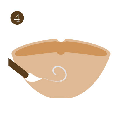 碗のくちの部分をそっと押しつぶし、形を整えます。