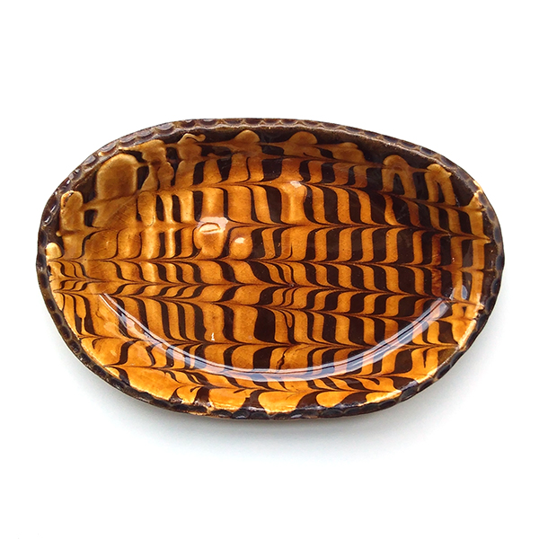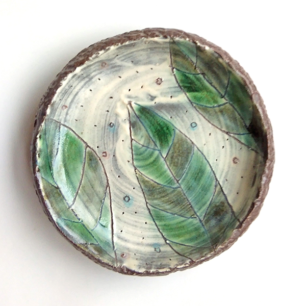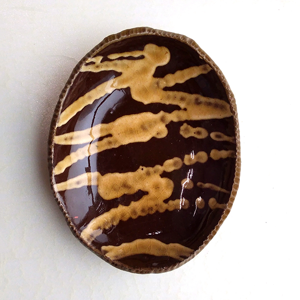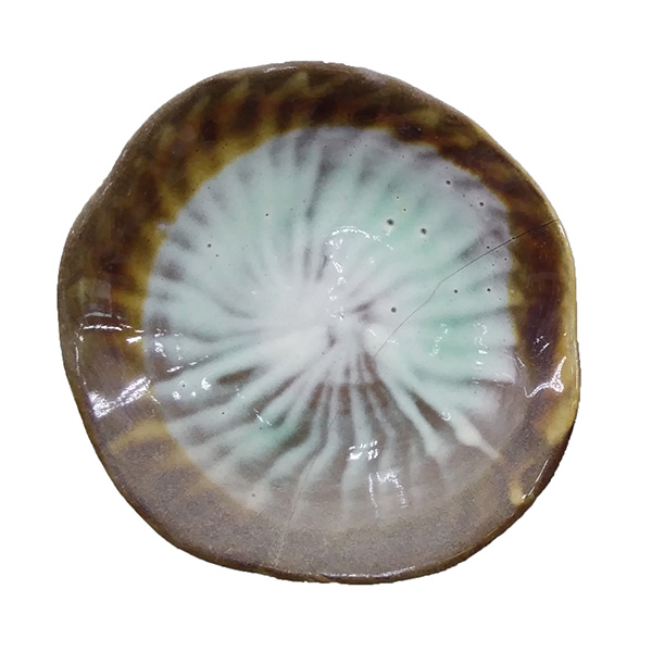 ・鉄分の多い粘土に白い化粧泥を施すと茶色い斑点が浮き出てきます。