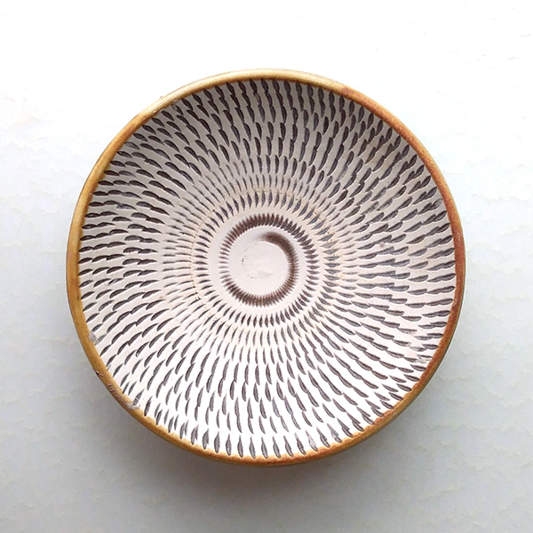 ・ 化粧泥の一部をヘラ等で削って連続した削り模様を出す技法です。