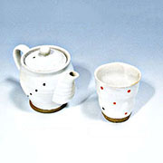 釉薬の厚さで乳白から淡茶に窯変する