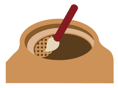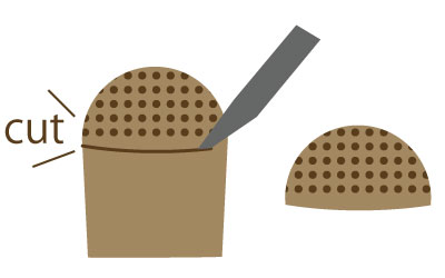 茶コシを入れたときに隙間ができないよう、角度をつけてくり抜く。