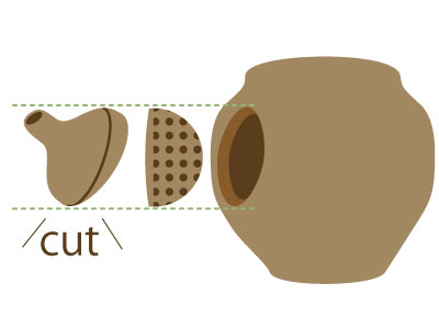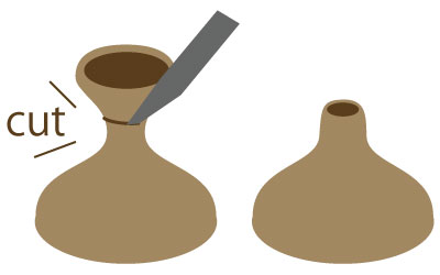 アタリをつけて本体をくり抜き、注ぎ口も角度に合わせてカッターでカットする。