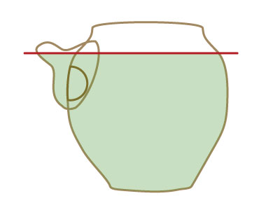 注ぎ口の高さでお茶の容量が決まる。茶こしは下に付ける。
